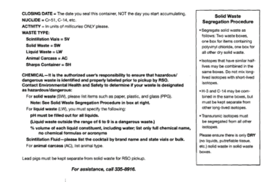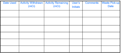 You must fill out the waste receipt form completely and correctly, before your waste will be picked up. Be sure to report the isotope and activity from your use log.