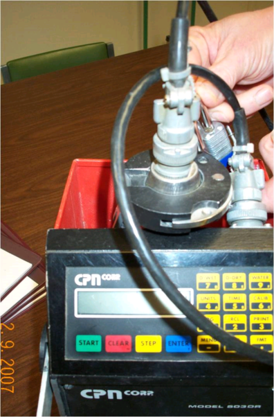 The purpose of the leak test is to ensure that the source inside the gauge is not leaking radioactive material. Under the terms of the Washington State University’s Radioactive Materials Licenses, a leak test must performed of the sealed sources inside gauges to ensure the integrity of the source encapsulation. Such leak tests are required at three or six-month intervals or annually depending on the nature of the source.